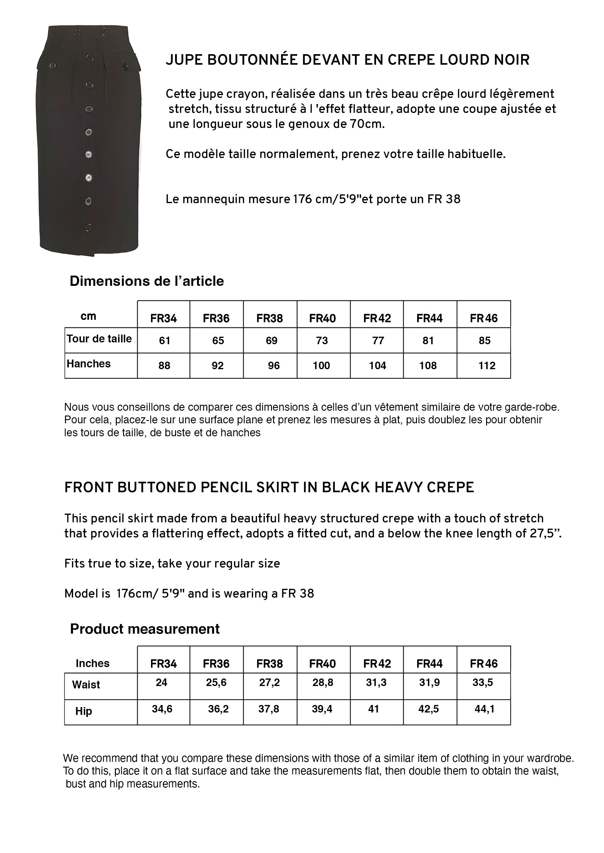 Cette jupe crayon, réalisée dans un très beau crêpe lourd légèrement stretch, tissu structuré à l 'effet flatteur, adopte une coupe droite ajustée, une longueur sous le genou. Son boutonnage sur le devant que vous pouvez fermer à la hauteur de votre choix offre la possibilité d'un look sophistiqué ou plus décontracté.