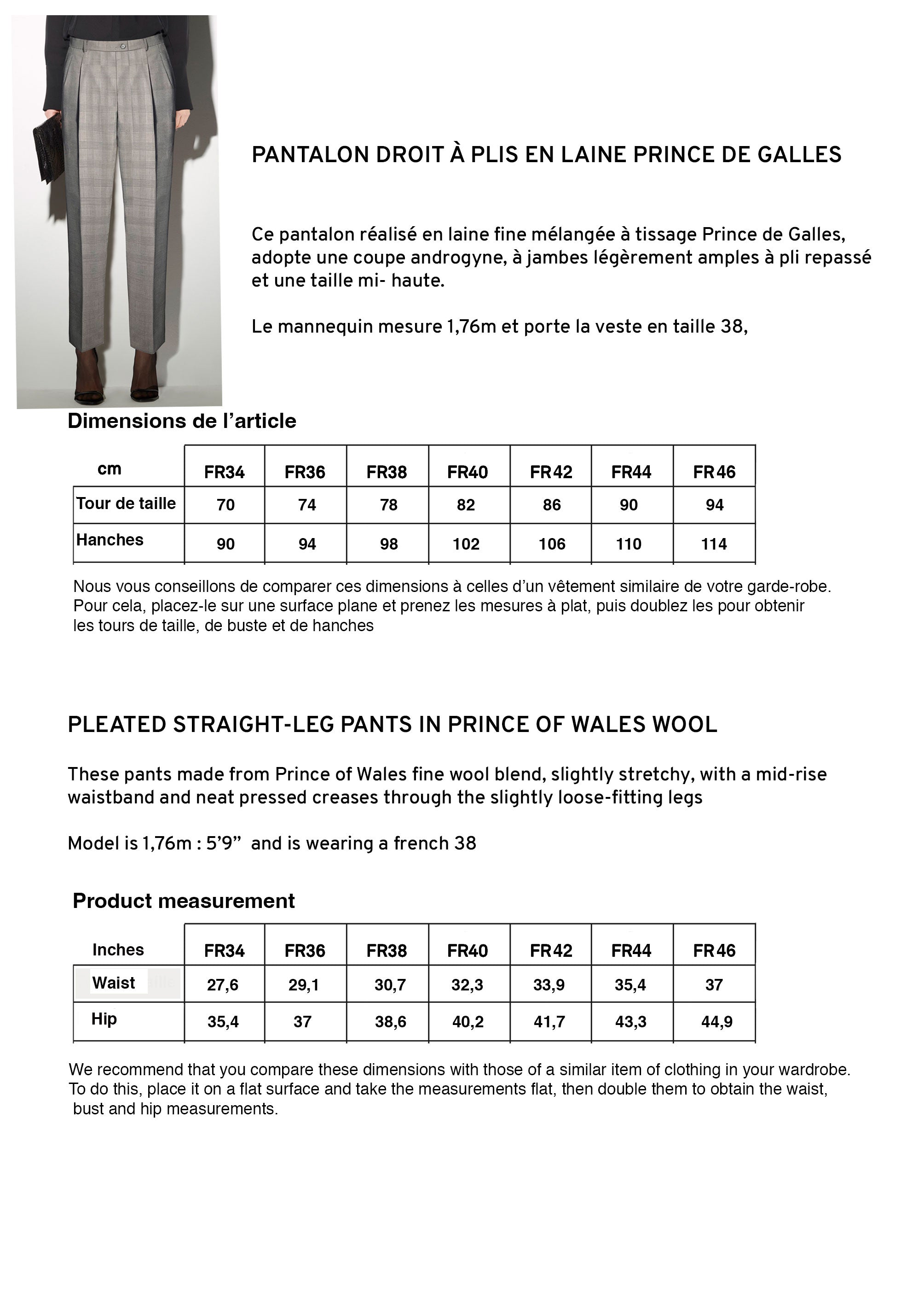 PANTALON DROIT À PLIS EN LAINE PRINCE DE GALLES